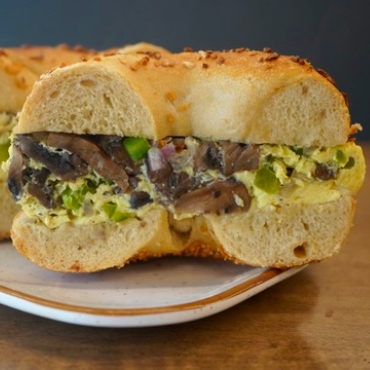 Your choice of fresh baked bagel or wrap, loaded with Philly-style steak, onions, peppers, mushrooms, peppercorn mayo and provolone cheese